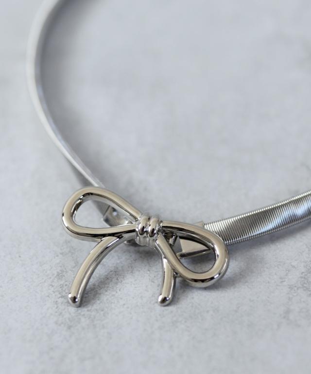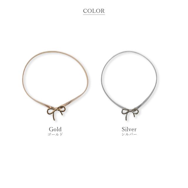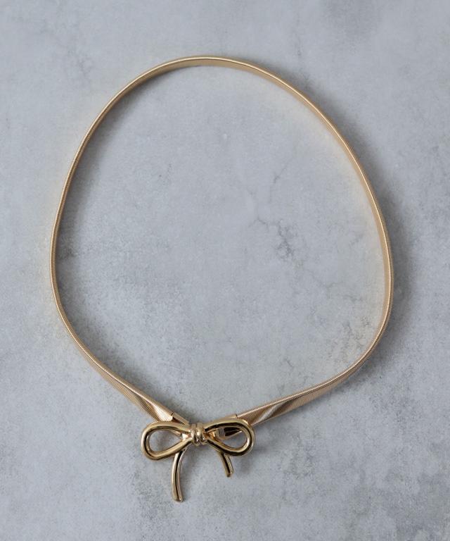 統一感のあるメタルカラーにリボンモチーフを大胆にあしらった、レディライクなウエストベルト♪