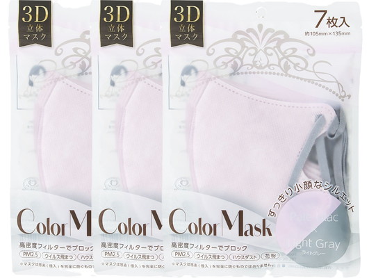 AJD 奥田薬品 バイカラーマスク ベールライラック×ライトグレー 7枚×3個セット「メール便送料無料(A)」