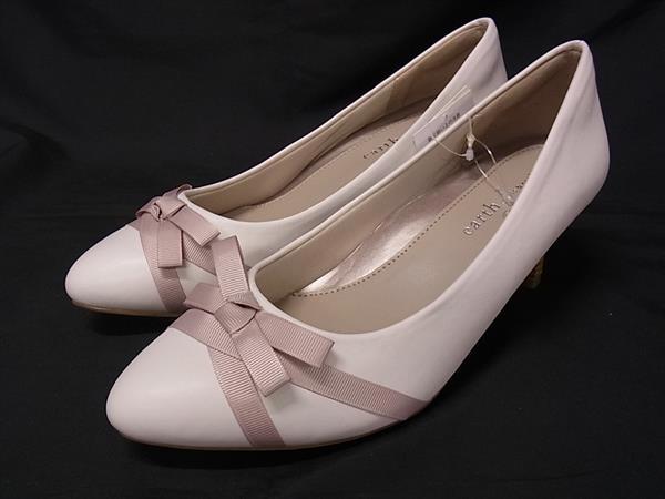 ■極美品■ earth アース レザー ヒール パンプス 表記サイズ 24.0 シューズ 靴 ホワイト系 DH8166