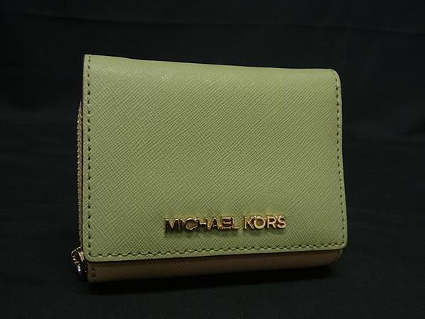 MICHAEL KORS マイケルコース レザー 三つ折り 財布 ウォレット 札入れ 小銭入れ レディース メンズ グリーン系×ベージュ系 DJ3080