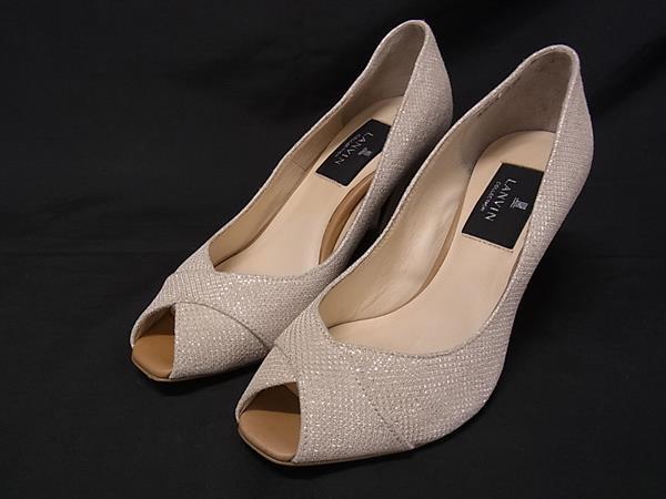 LANVIN ランバン 9244 ラメ オープントゥ ヒール パンプス 表記サイズ 22 1/2(約22.5cm) 靴 レディース シルバーベージュ系 DI9741