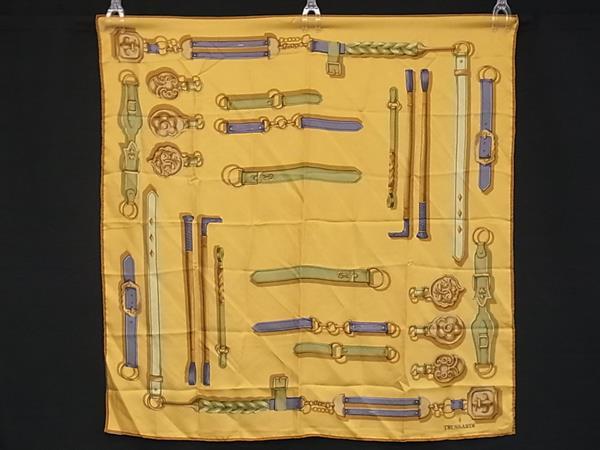 ■美品■ TRUSSARDI トラサルディ シルク100% 総柄 大判 スカーフ ストール ショール イエロー系×マルチカラー DI5502