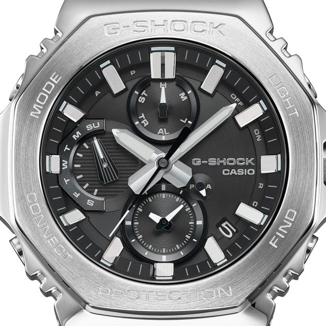 G-SHOCK初代モデル“DW-5000C”のコンセプトを受け継いで開発されたアナログ「2100」シリーズのフルメタルクロノグラフです。