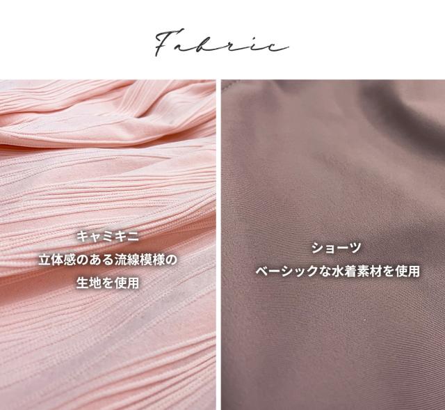 キャミキニ:立体感のある流線模様の生地を使用