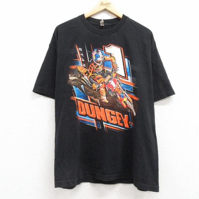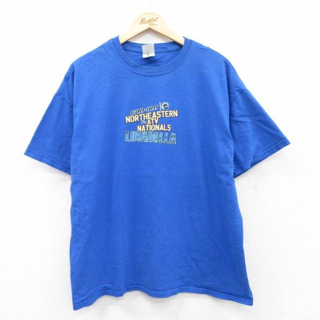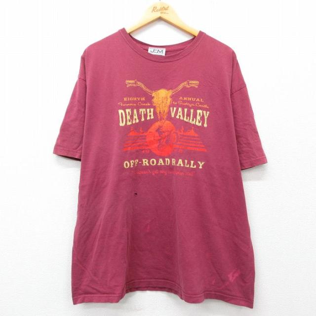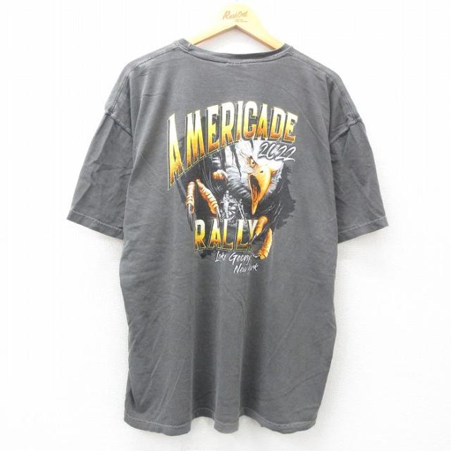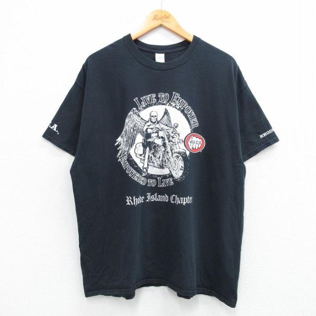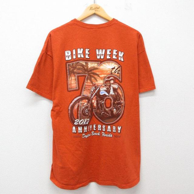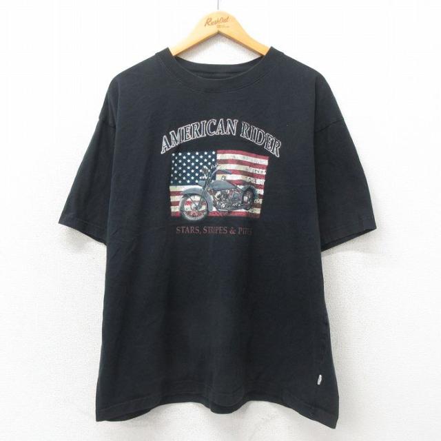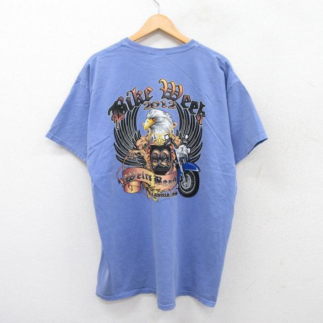 古着 半袖 Tシャツ メンズ バイク 鳥 大きいサイズ コットン クルーネック 薄紺 ネイビー XLサイズ 中古 中古 古着
