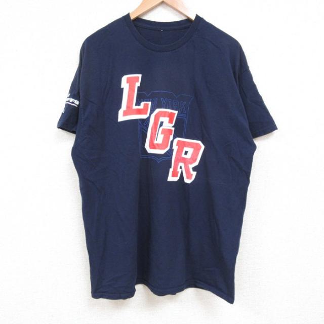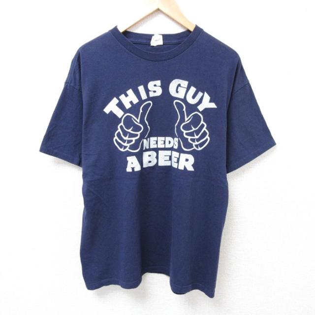 古着 半袖 Tシャツ メンズ 鳥 クルーネック 紺 ネイビー 霜降り Lサイズ 中古 中古 古着