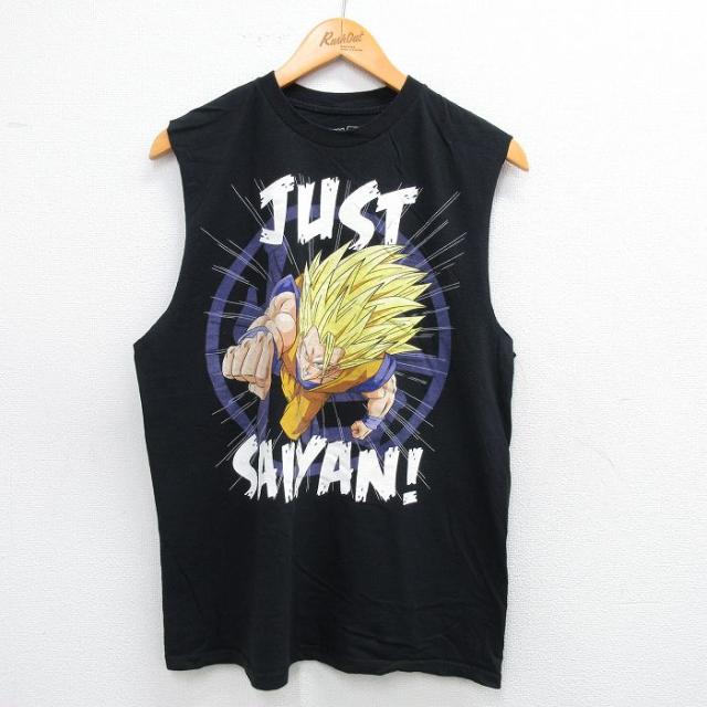 古着 ノースリーブ Tシャツ メンズ アニメ ドラゴンボール コットン クルーネック オレンジ Lサイズ 中古 中古 古着