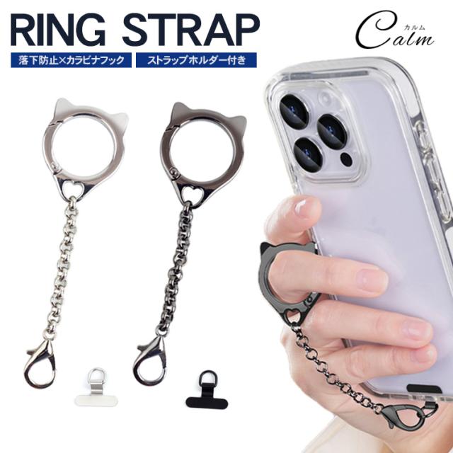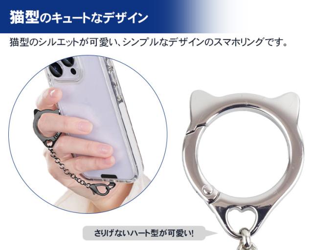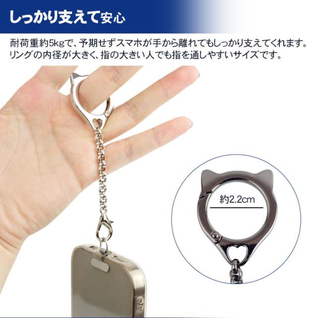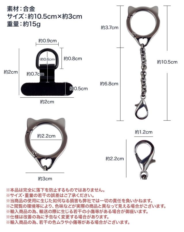 ねこ型 リングストラップ スマートフォン ストラップホルダー 携帯ストラップ スマホ チェーン 猫耳 ホールド 落下防止 合金 カラビナ シンプル 盗難防止 簡単取付