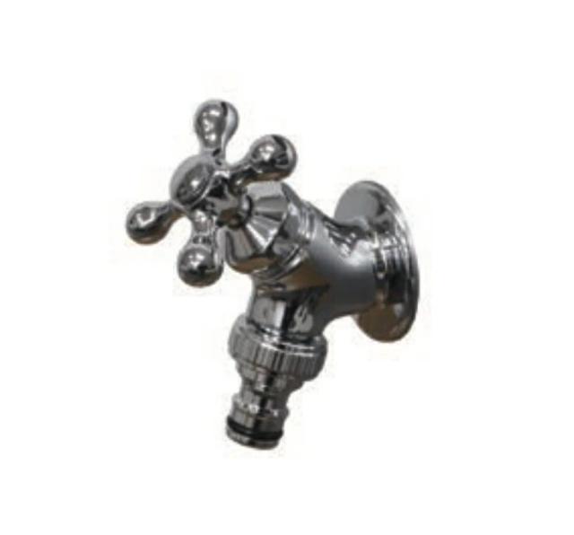 補助蛇口 ホース接続水栓 「シルバー(メッキ)」 横アダプター付き ハンドル オシャレな水道蛇口 かわいい蛇口 FAUCET TOSHIN