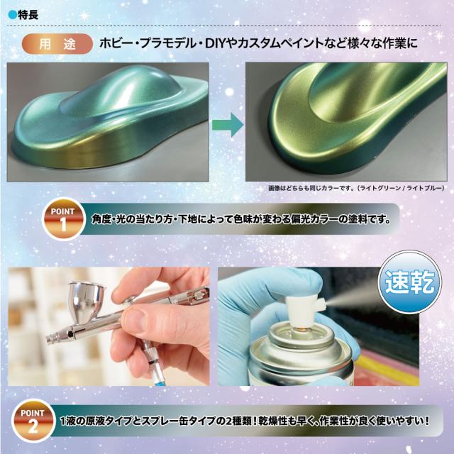 白地にも黒地にも塗装でき、かつ色味も変化するので自分だけのカスタムカラーができます!ホビー・プラモデル・DIYやカスタムペイントなど様々な作業に
