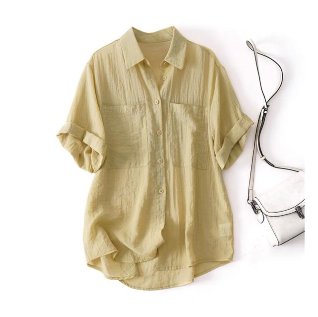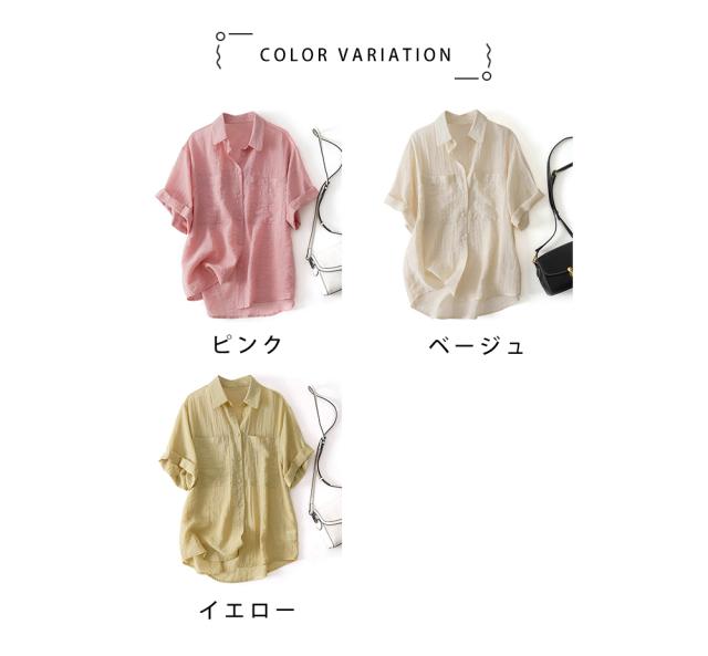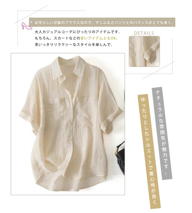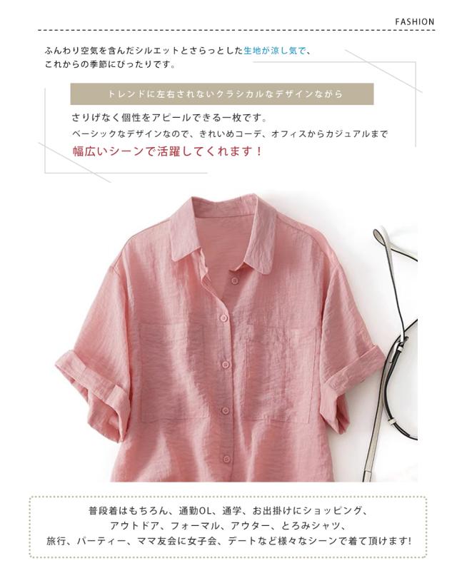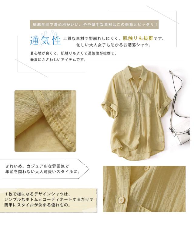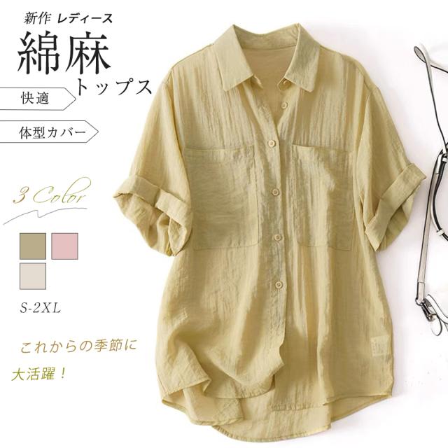 シャツブラウス レディース 綿麻 シャツ 半袖 ブラウス 前開き コットンリネン 柔らかい 大きいサイズ 涼しい 夏 薄手 カジュアル トップス 通気性 通勤 おしゃれ 大人 通学 ビジネス