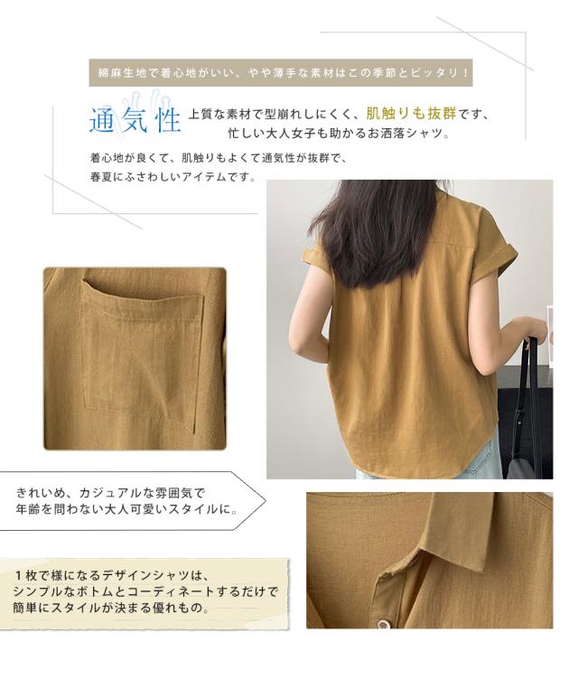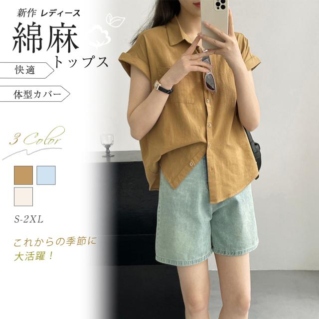 シャツブラウス レディース 綿麻 シャツ 半袖 ブラウス 前開き コットンリネン 柔らかい 大きいサイズ 涼しい 夏 薄手 カジュアル トップス 通気性 通勤 おしゃれ 大人 通学 ビジネス