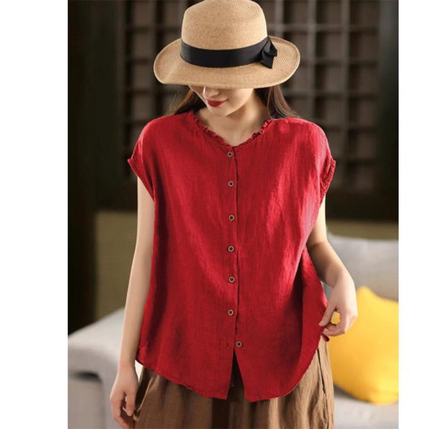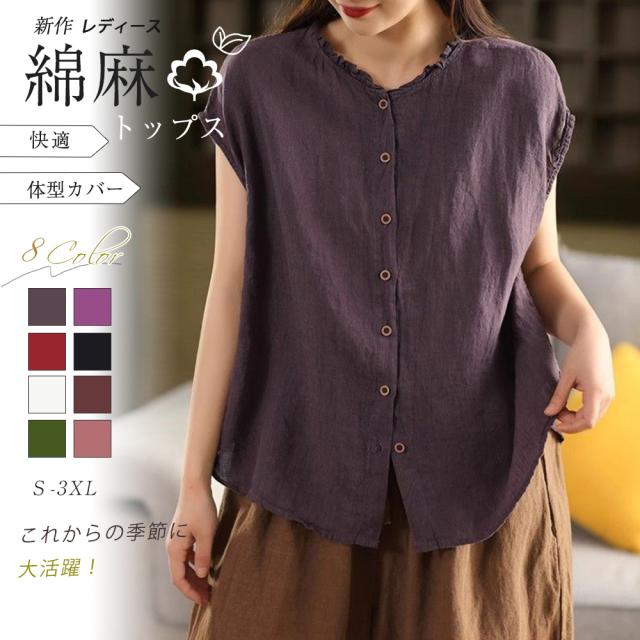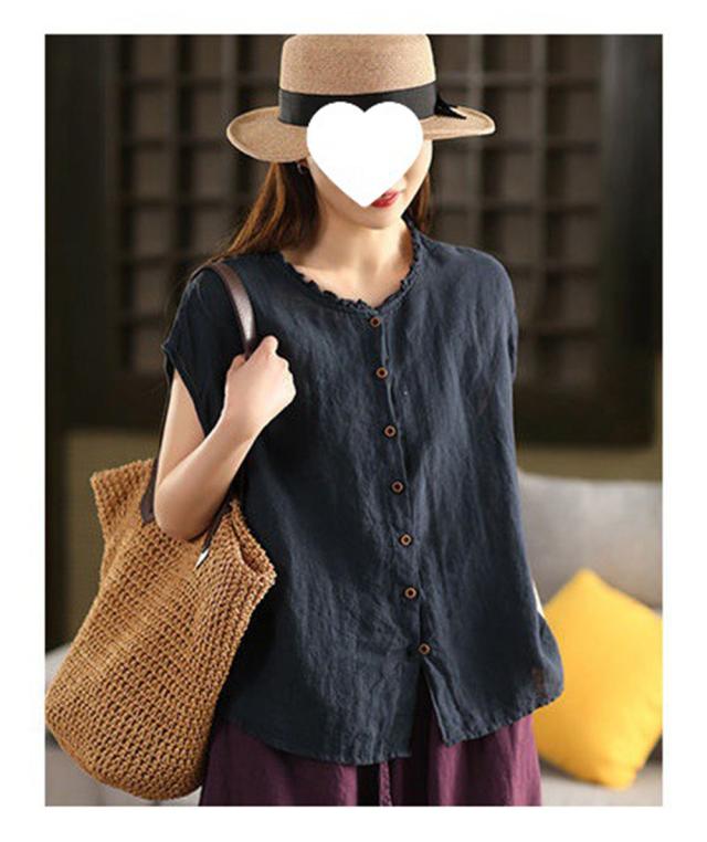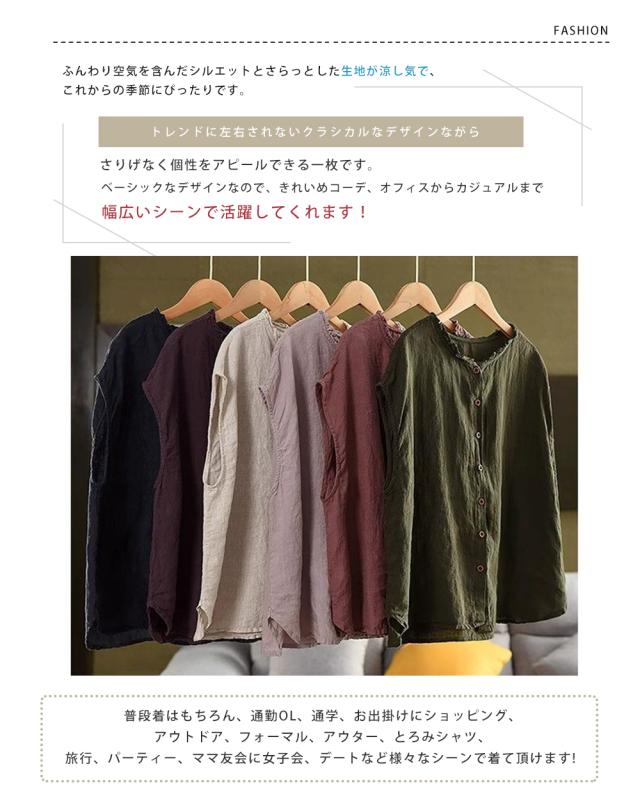 シャツブラウス 綿麻ブラウス 半袖シャツ レディース ブラウス 前開きコットンリネン 柔らかい 大きいサイズ涼しい 夏 薄手 カジュアル トップス 通気性 通勤 おしゃれ 大人 通学 ビジネス