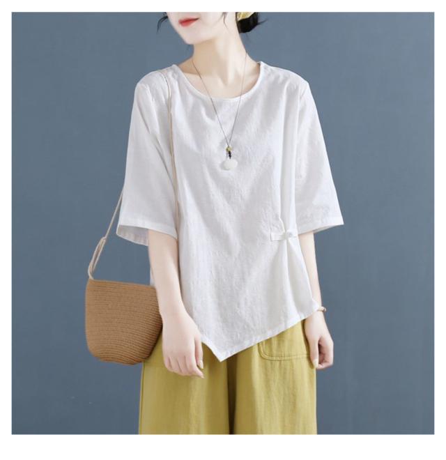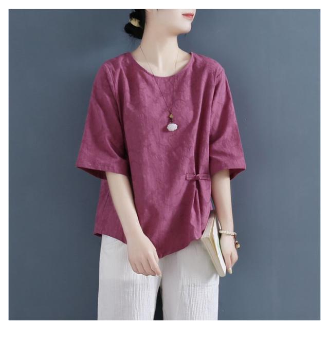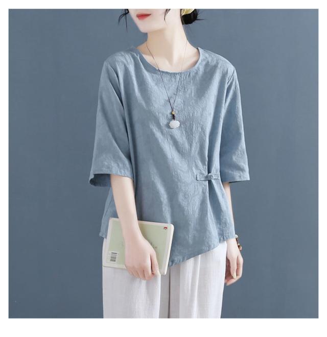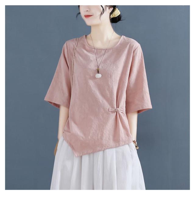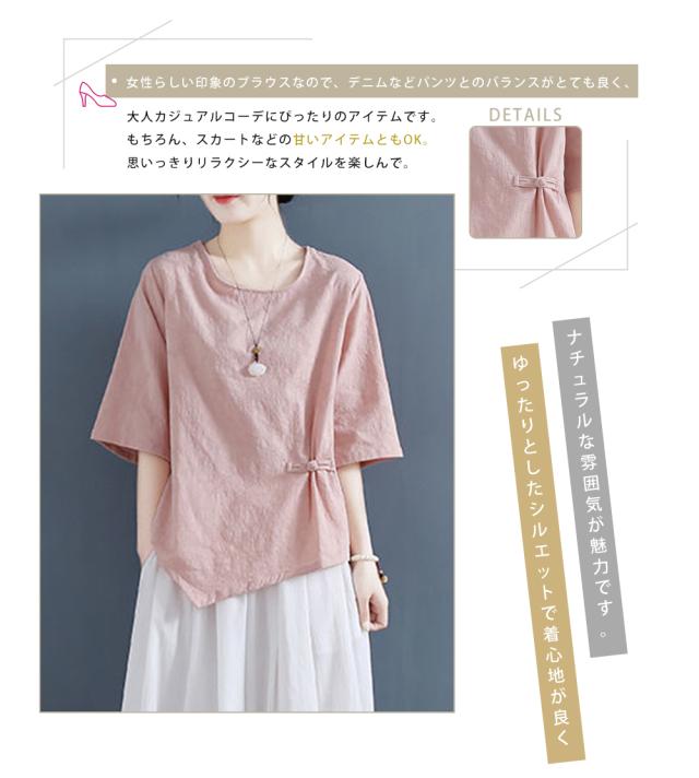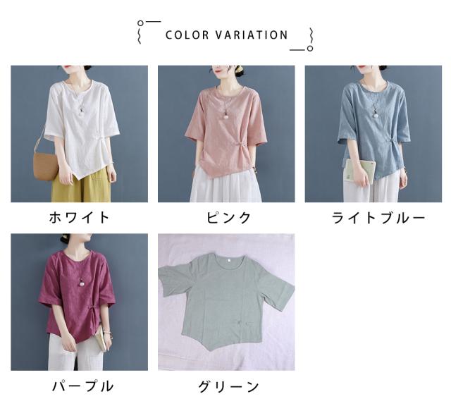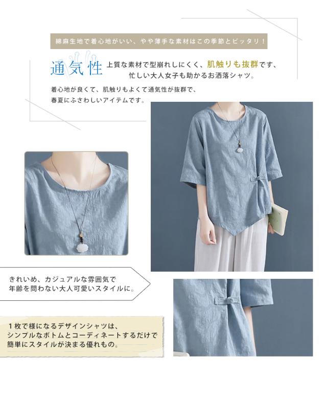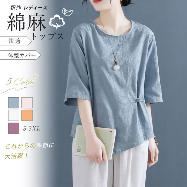 ブラウス レディース 夏 半袖 Tシャツ プルオーバー 綿麻混 リネン シャツ 大人 シンプル カジュアル トップス 薄手 きれいめ デート オフィス 通勤 普段着
