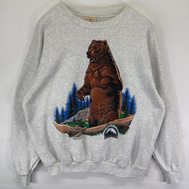 古着 90s/90年代 NATIONAL WILDLIFE FEDERATION USA製 スウェット トレーナー アニマル ベア プリント 大きいサイズ XXL グレー