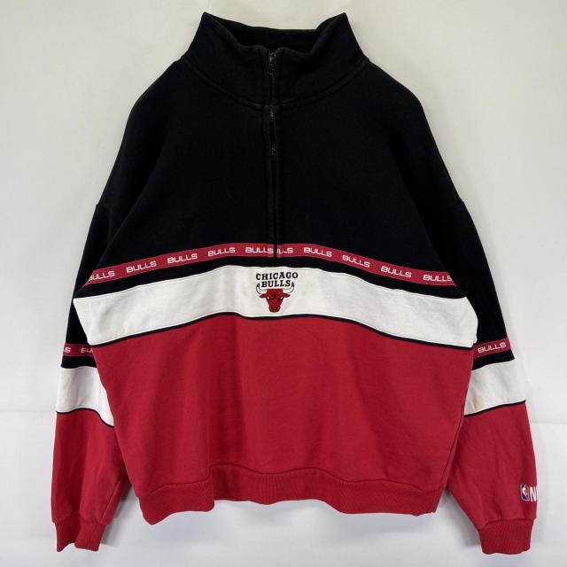 古着 スウェット NBL シカゴブルズ ハーフジップ トレーナー ロゴ刺繍 プルオーバー マルチカラー L ブラック メンズ