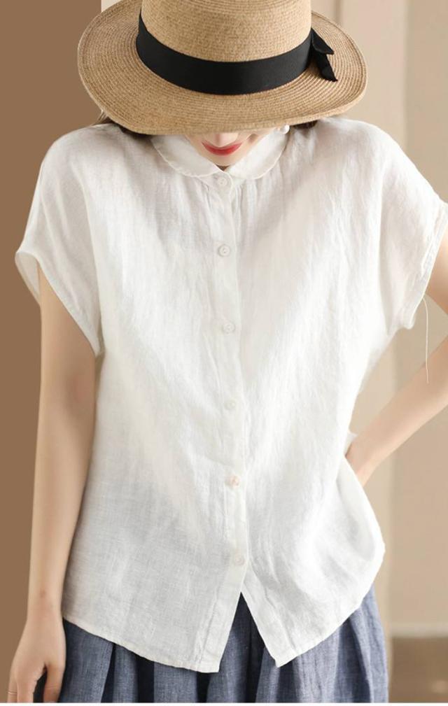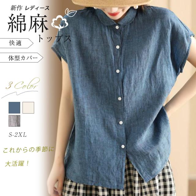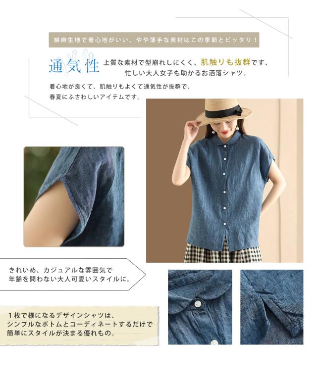 シャツブラウス 綿麻ブラウス 半袖シャツ レディース ブラウス 前開きコットンリネン 柔らかい 大きいサイズ涼しい 夏 薄手 カジュアル トップス 通気性 通勤 おしゃれ 大人 通学 ビジネス