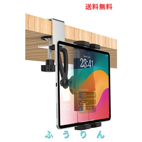 【ユニバーサルタブレットホルダー】キッチン、卓上、デスク、オフィス、寝室、ゴルフカート、フォークリフト、ガレージ、物置など、さまざまな場所で使用できます。調整可能な金属製クランプは、最大1.6インチ(40mm)までの厚さのキャビネット、棚、テーブルにしっかりと固定できます。