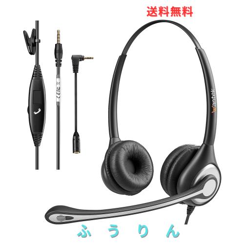 ヘッドセット携帯電話用3.5mm 両耳 ノイズキャンセリングマイク付きとコール制御PC用ヘッドホン Web会議、Skype、オフィス、在宅勤務、ビ