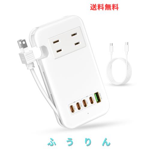 素直な虹 電源タップ USB-C コンセント PD 65W Type-C 【4つUSB-C ポート・USB-A ポート・2つACコンセント・PSE認証済・ケーブル収納式