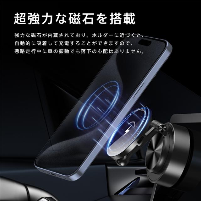車載充電器 車載ホルダー ワイヤレス充電器 吸盤 真空 両面吸着 最大15W出力 急速充電 スマホスタンド 置くだけ 角度調整 マ