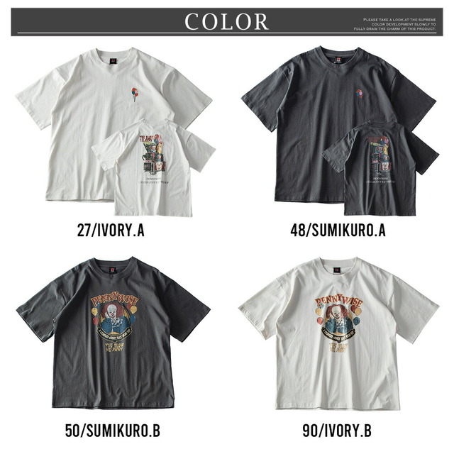 tシャツ メンズ 綿100 大きめ 半袖 ピグメント キャラT IT ピエロ 半袖tシャツ キャラクター ディズニー トップス カジュアル 無地 プレゼント インナー