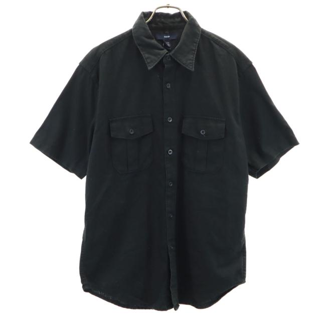 GAP ギャップ リネンブレンド 半袖 ワークシャツ M ブラック メンズ