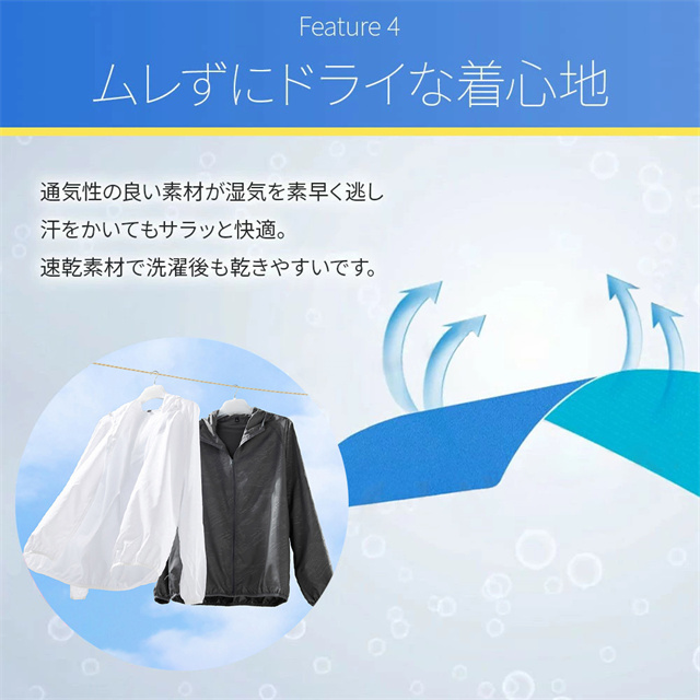 急な天候の変化に、さっと対応できる準備はありますか。このウィンドブレーカーは、驚くほど軽くてコンパクトになるんです。まるで折り畳み傘のように、付属の専用袋に入れれば手のひらサイズに収まります。だから、普段使いのバッグの隅や、旅行カバンのポケットに気軽に入れておけます。いざという時のために備えても、全く邪魔にならないのが嬉しいですよね。 素材には、多くの機能を持つポリエステルを採用しています。まず注目したいのが、日差しの強い季節に頼りになる紫外線カット効果です。特殊な紫外線カット加工が施された生地が、降り注ぐ紫外線を効果的にブロック。肌への負担を気にせず、屋外での活動を楽しめます。まるで、着る日よけのようですね。 さらに、衣服内の快適さを保つための工夫も。通気性が良く、汗をかいても素早く乾く速乾性を備えているため、蒸し暑さを感じにくく、いつでもサラリとした肌触りが続きます。暑さが厳しい日には、ひんやりとした冷却効果を感じられることもあるでしょう。 もちろん、撥水加工も忘れていません。生地表面で水滴を玉のように弾くので、予期せぬ小雨や水しぶき程度なら、慌てずに済みます。アウトドアやスポーツシーンでの安心感はもちろん、変わりやすい天気の日のお出かけや、自転車での通勤・通学まで。本当に幅広い場面で、この一枚が活躍してくれるはずです。備えあれば憂いなし、とはよく言いますが、このウィンドブレーカーがまさにそうかもしれません。 |