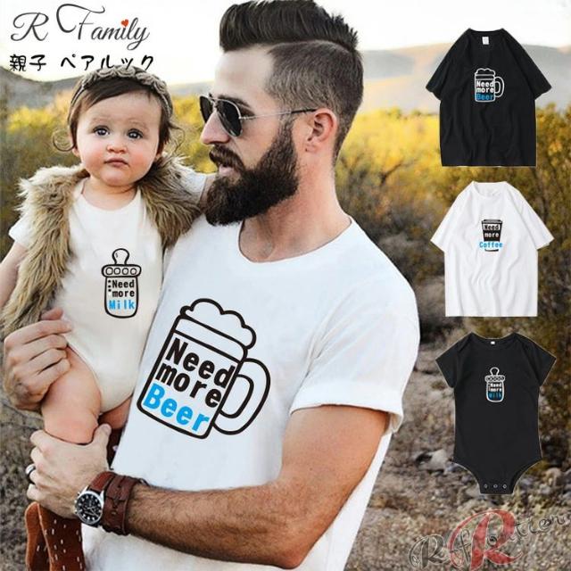 リンクコーデ 親子 セット 親子 ペアtシャツ 赤ちゃん ロンパース 親子 ペアルック ロンパース 夏 ベビー 大きいサイズ パパ ビール コーヒー ミルク かわいい 親子コーデ tシャツ 家族 お揃い tシャツ 子供服 親子ペアルック 母の日 誕生日 父の日