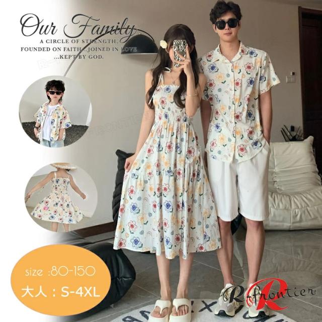 親子ペア ワンピース アロハシャツ 花柄 リンクコーデ 親子 セット 夏 リゾート 半袖 シャツ 親子お揃い 親子コーデ ワンピース 親子コーデ ポへミア ビーチウエア 男の子 女の子 娘 息子 記念日 家族活動 カップルペア 旅行 母の日 ギフト