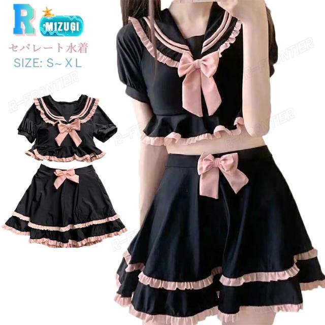 水着 女子 セパレート 体型カバー 胸パッド付き 韓国風 高校生 水着 可愛い リボン 黒 ピンク レディース 大人 ジュニア 露出控えめ みずぎ 快適 温泉 トップス スカート 女性 バスト カバーアップ 水着 可愛い セクシー 海遊び ビーチ 送料無料