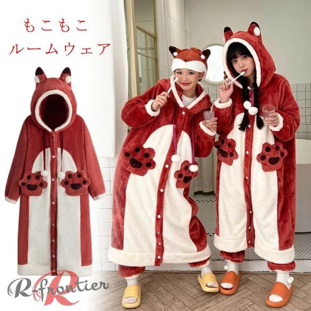 着ぐるみ パジャマ 可愛い 狐 大人用 もこもこ ルームウェア レディース 着る毛布 動物 ワンピース 中学生女子 修学旅行 高校生 もこもこ パジャマ 冬用 寝巻き 韓国 部屋着 フード付き 長袖 暖かい 防寒 秋 お揃い クリスマスプレゼント イベント お祭り 学園祭 女子会