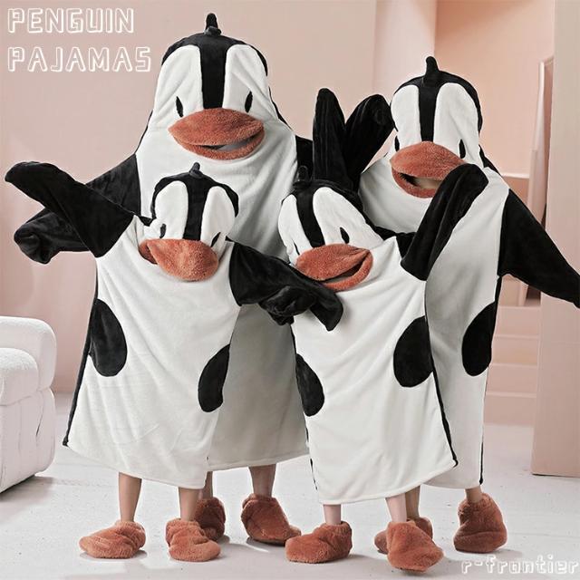 親子コーデ 秋冬 着ぐるみパジャマ ペンギン パジャマ もこもこ 冬 ルームウェア おもしろ ペアパジャマ 裏起毛 親子 リンクコーデ セット 母娘 カップル 着ぐるみ パジャマ 大人 キッズ 女の子 男の子 着る毛布 動物 ナイトガウン 家族 お揃い 部屋着 誕生日 プレゼント