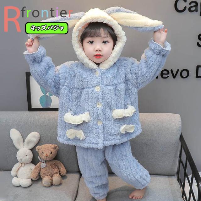 着ぐるみ パジャマ 子供用 うさぎ耳 冬物 もこもこ パジャマ ルームウェア キッズ 着る毛布 動物 秋 2点セット 女の子 寝巻き 上下セット 前開き お揃い 防寒 暖かい イベント 学園祭 文化祭 部屋着 可愛い 女子会 長袖 韓国 80-130cm
