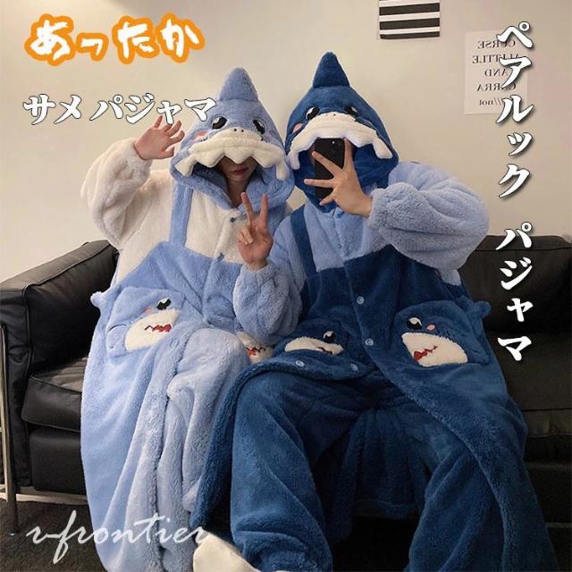 サメ 着ぐるみ パジャマ ペア お揃い サメ パジャマ 冬 モコモコ パジャマ 大人用 着る毛布 ガウン ロングパンツ カップル 部屋着 防寒 動物 フランネル ルームウェア レディース メンズ 寝巻き カップル フード付き 暖かい 夫婦 記念日 結婚祝い クリスマス プレゼント