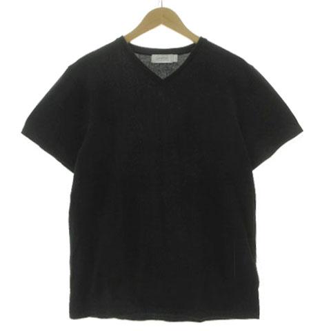【中古】カルバンクライン プラティナム Calvin Klein PLATINUM VネックTシャツ 半袖 コットン混 総柄 ブラック 黒 L