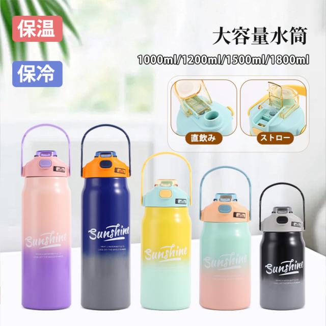 水筒 大容量 ストロー付き スポーツボトル 子供 大人 保冷 スポーツジャグ 直飲み ハンドル付 大容量 おしゃれ スポーツボトル 保冷 保温 広口 大容量 316ステンレス 真空断熱 氷 持ち運び 学校 アウトドア スポーツ 1000ml 1200ml 1500ml 1800ml