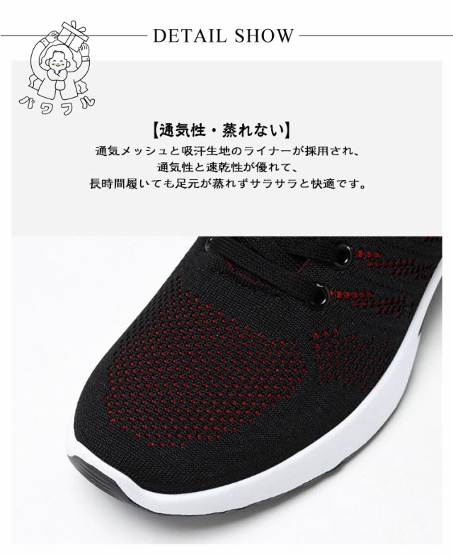 | 高通気性で夏でも快適に 軽量・柔軟 スニーカー 24-28.5cm 4デザイン×3カラー 【超軽量・疲れにくい】足への負担を最小限にし、長時間使っても疲れにくい、履けばわかるこの履き心地! 【クッション性・歩きやすい】ソールには秘密なクッションを内蔵し、まるで雲の上で歩くようなふわふわな履き心地感がアピール。着地の際に反発力が更に発揮し、足の負担を軽減し優しくサポートしてくれます。 【耐久性・滑りにくい】耐摩耗性と防滑兼備のアウトソールが使用されるため、ランニング、ジョギング、ウォーキングなどあらゆる場面にお使い頂ける万能靴です。 【通気性・蒸れない】通気メッシュと吸汗生地のライナーが採用され、通気性と速乾性が優れて、長時間履いても足元が蒸れずサラサラと快適です。 | |