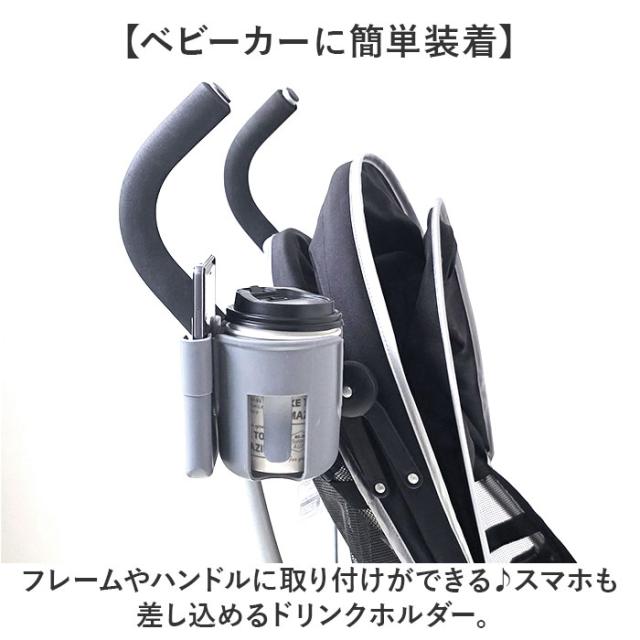 ベビーカードリンクホルダー 通販 ボトルホルダー カップホルダー ドリンク ボトル ホルダー ベビーカー用 収納用品 小物入れ ベビーマグ 水筒 スマホホルダー スマホ 携帯 ペットボトル 飲み物 赤ちゃん ベビー お出かけ 取り付け簡単 シンプル