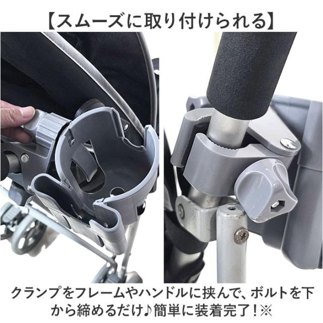 | 商品説明 | 【ベビーカーに簡単装着】 ・フレームやハンドルに取り付けができる♪スマホも差し込めるドリンクホルダー。 【こまめな水分補給を】 ・お子様はもちろん、ママ自身もこまめに水分補給が出来る便利アイテム♪ 【フレキシブルに対応】 ・ペットボトルやカップはもちろん、哺乳瓶やストローマグサイズにも対応。 【スムーズに取り付けられる】 ・クランプをフレームやハンドルに挟んで、ボルトを下から締めるだけ♪簡単に装着完了!※ (※)開口幅:最大約4.5cm 【スマホホルダー付き】 ・ドリンクホルダーの手前には、6.1インチまでのスマホを収納可能。※ (※)お手持ちのスマホサイズをご確認下さい。またカバーの種類によっては6.1インチのスマホでも入らない場合がございます。 【バギーや自転車にも】 ・ベビーカーはもちろん、バギーや自転車にも対応。1つあるだけで様々なシーンで活躍。 |