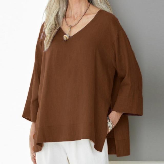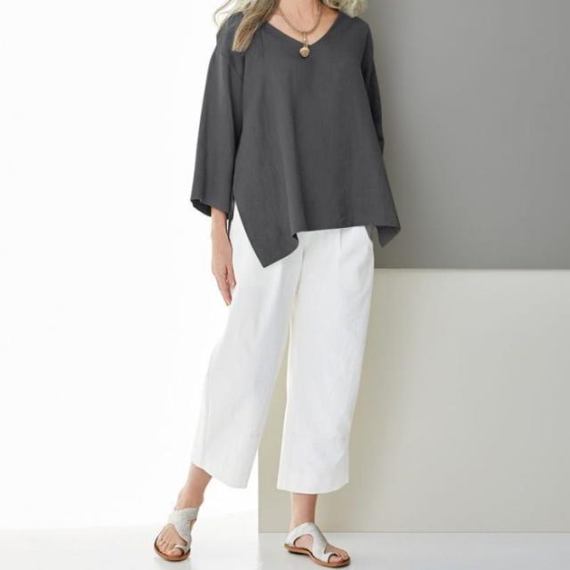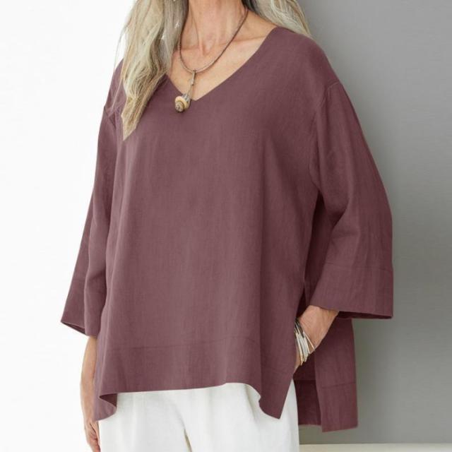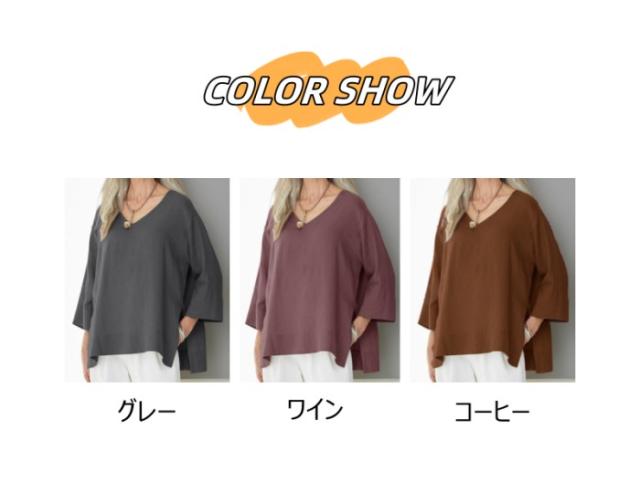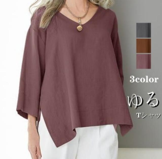 ブラウス 綿麻風 レディース ゆるtシャツ トップス 夏 七分袖 無地 Tシャツ ブラウス スリット ゆったり 体型カバー カジュアル