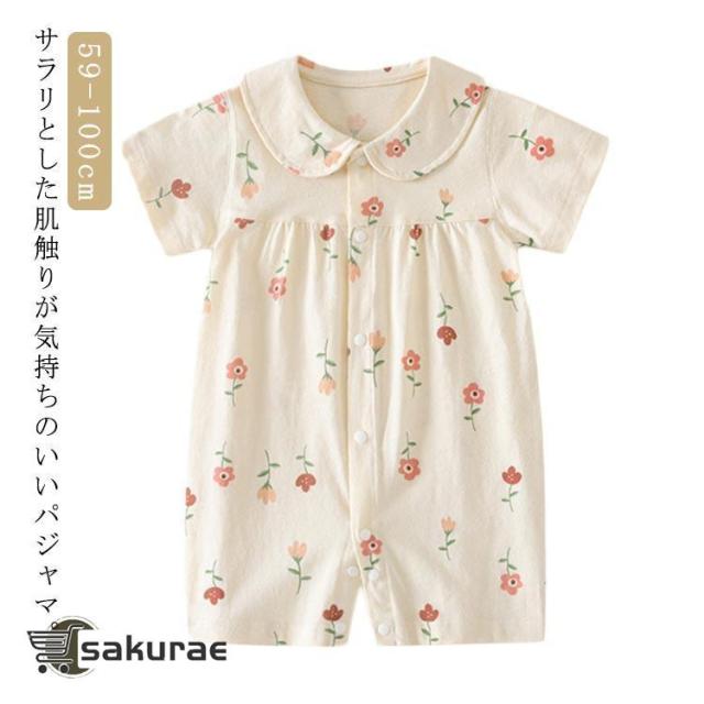 ベビー服 ロンパース 半袖 カバーオール 女の子 男の子 前開き ベビー服 春 夏 ベビー 新生児 子供服 キッズ 花 花柄 かわいい おしゃれ ナチ