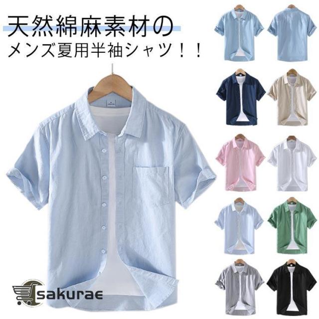 春服 半袖シャツ 麻 メンズ 綿 無地 綿麻シャツ コットンリネン 無地 カジュアルシャツ リネンシャツ 夏服 リネンシャツ キレイめ おしゃれ 父の