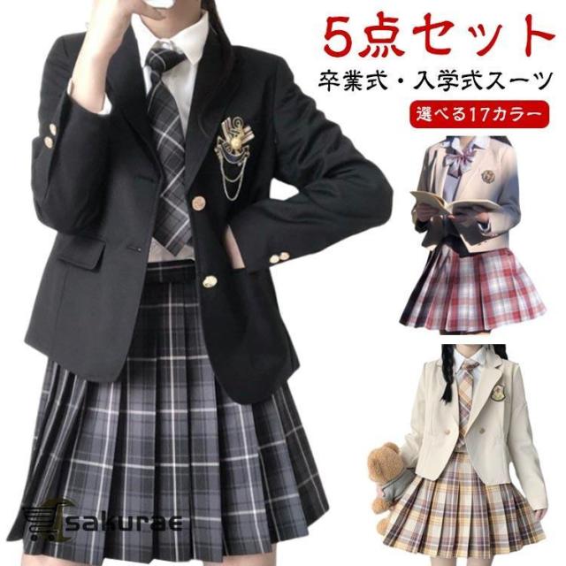 高校生 卒業式 5点セット 中高生 入学式 女の子 ブレザー 中学生 ネクタイ スーツ 大きいサイズ 小学生 小学校 卒業式服 子供服 女子 JK 制