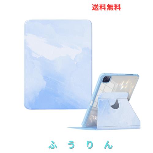 縦置き対応iPad Air 6 11 インチ/ iPad Air 5 ケース 2022 / iPad Air 4 ケース 2020 10.9 インチ 透明バックカバー 360度回転式 Apple Pencil 収納可能 Apple Pencil 2 ワイヤレス充電対応 三つ折スタンド スリープ機能 軽量 薄型 傷つけ防止 PU合成レザー TPU レディース 大理石柄 イラスト