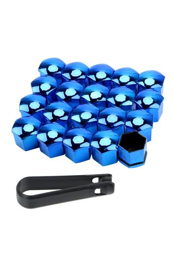 [CHIFONE] ボルト キャップ カラフル 車 タイヤ ホイールナット カバー 汎用 レッド ブルー 光沢 トラック サビ 防止 17MM 20個セット 青