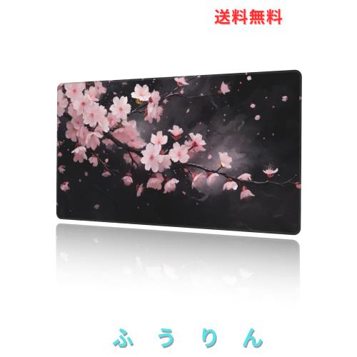 ◆商品名:マウスパッド 大型 ゲーミング ピンク 桜 花 ブラック 花びら マウスマット デスクマット 特大 おおきい キーボードパッド ゴム底 エレコ