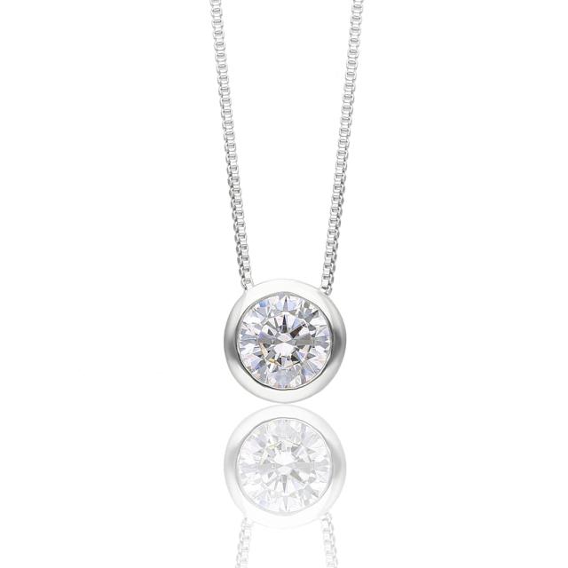 上品なきらめきを放つ6.5mmのキュービックジルコニアを1石あしらった、シンプルで洗練されたネックレス。