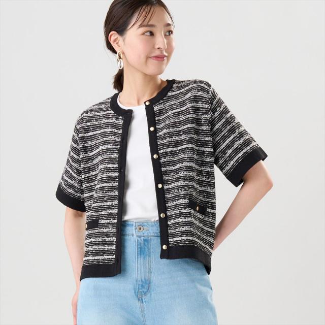 ニット 7Gツイード風カーディガン 半袖 レディース