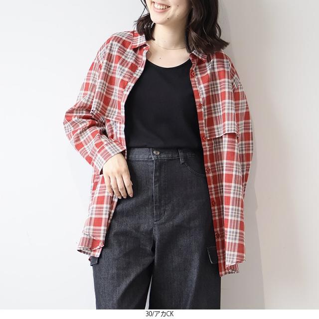 【大きいサイズ】エアリーチェックフライヨークシャツチュニック